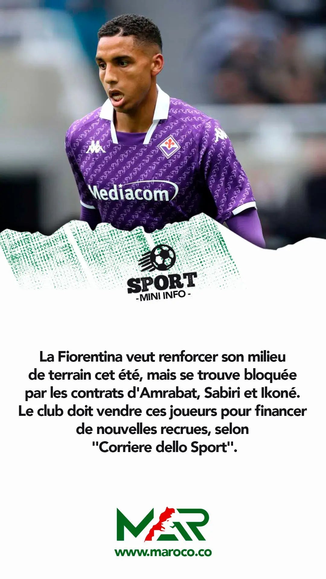 La Fiorentina souhaite renforcer son milieu de terrain cet été, mais se trouve bloquée par les contrats de Sofyan Amrabat, Abdelhamid Sabiri et Jonathan Ikoné.