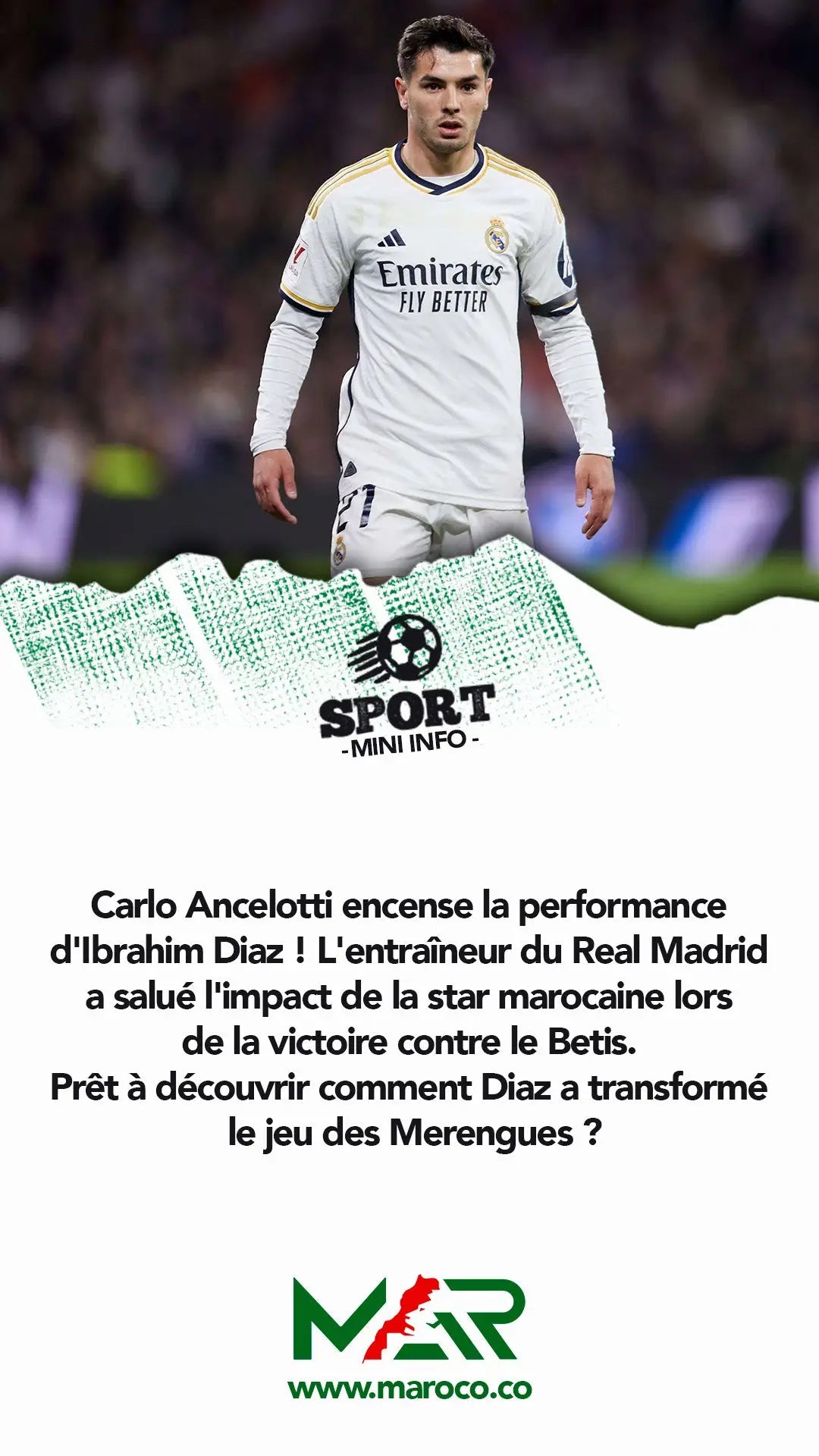 Carlo Ancelotti encense la performance d'Ibrahim Diaz ! L'entraîneur du Real Madrid a salué l'impact de la star marocaine lors de la victoire contre le Betis..