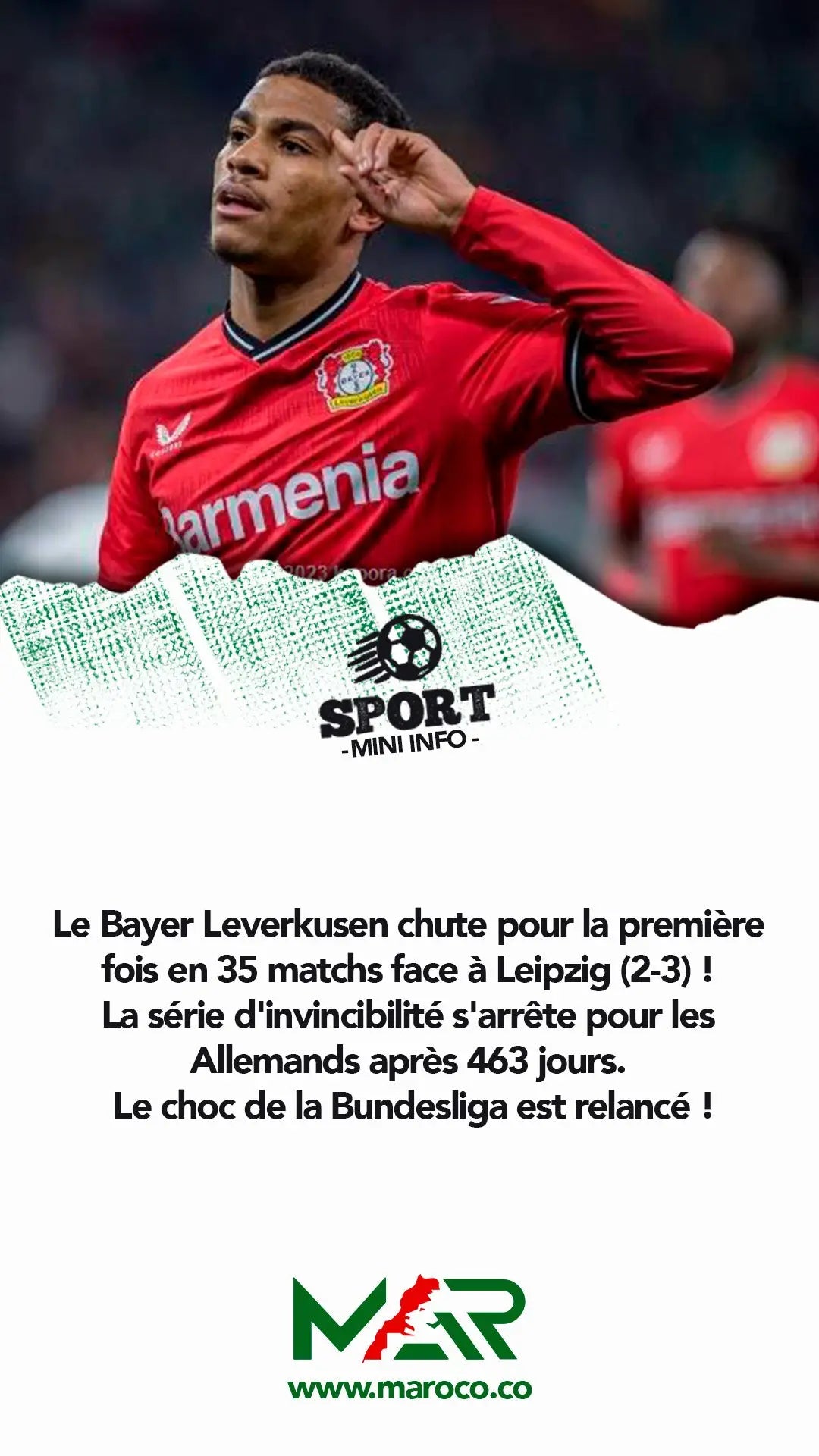 Le Bayer Leverkusen chute pour la première fois en 35 matchs face à Leipzig (2-3) ! La série d'invincibilité s'arrête pour les Allemands après 463 jours..