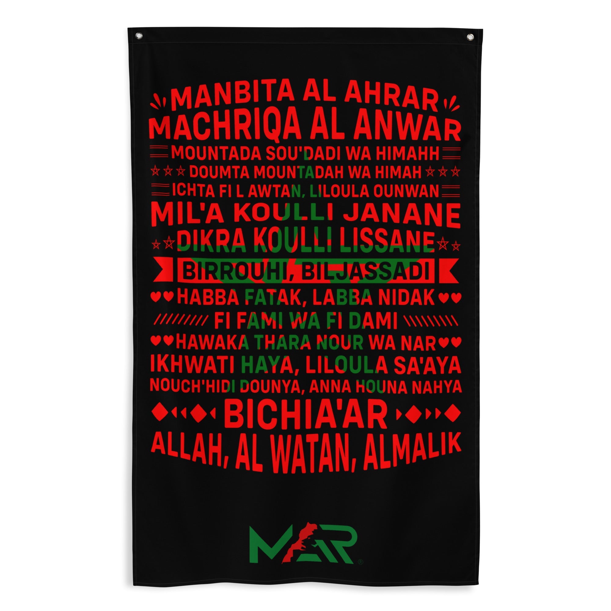 Ce drapeau marocain avec l'hymne national est un moyen idéal de démontrer votre patriotisme et votre fierté envers le Maroc. Fabriqué avec soin, cet hymne est inscrit pour refléter notre dévotion envers Allah.