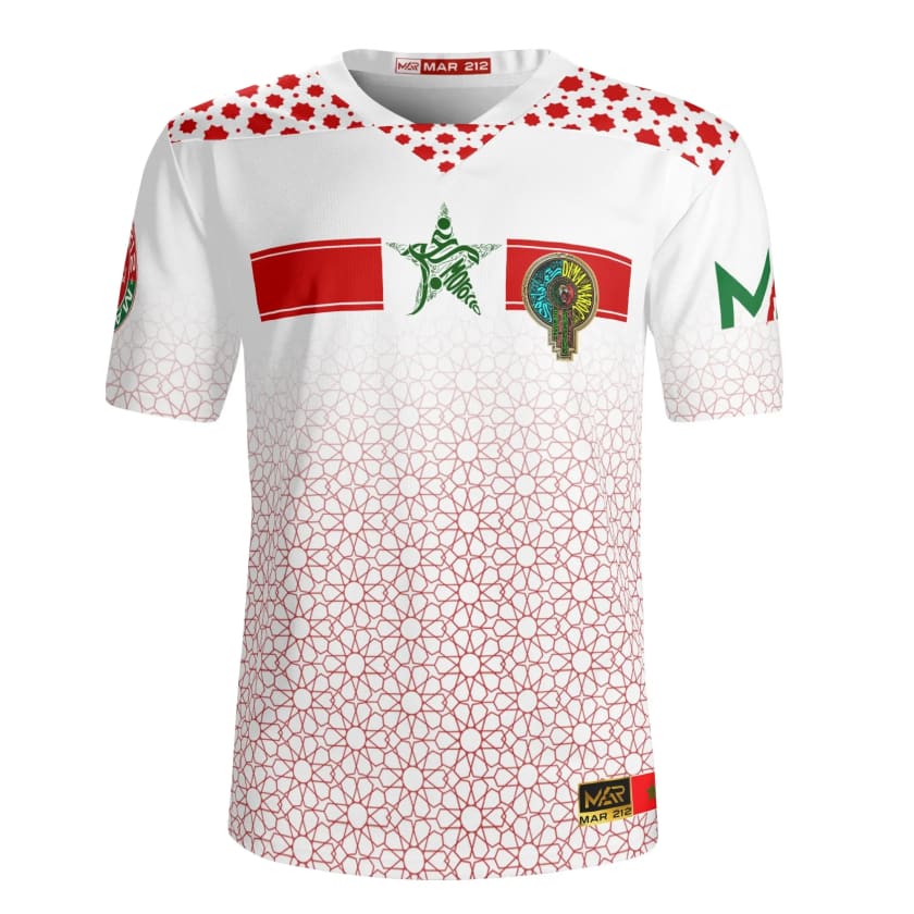 Le maillot Maroc blanc, créé par MAR, est un incontournable pour tous les fans de football. Avec son design élégant et sa couleur blanche emblématique et ces ornements en couleurs du drapeau Marocain, il met en valeur le style et la fierté du Maroc. Fabriqué avec des matériaux de haute qualité, il assure un confort optimal pour une performance maximale sur le terrain. Un véritable must-have pour représenter votre équipe préférée avec classe et élégance.