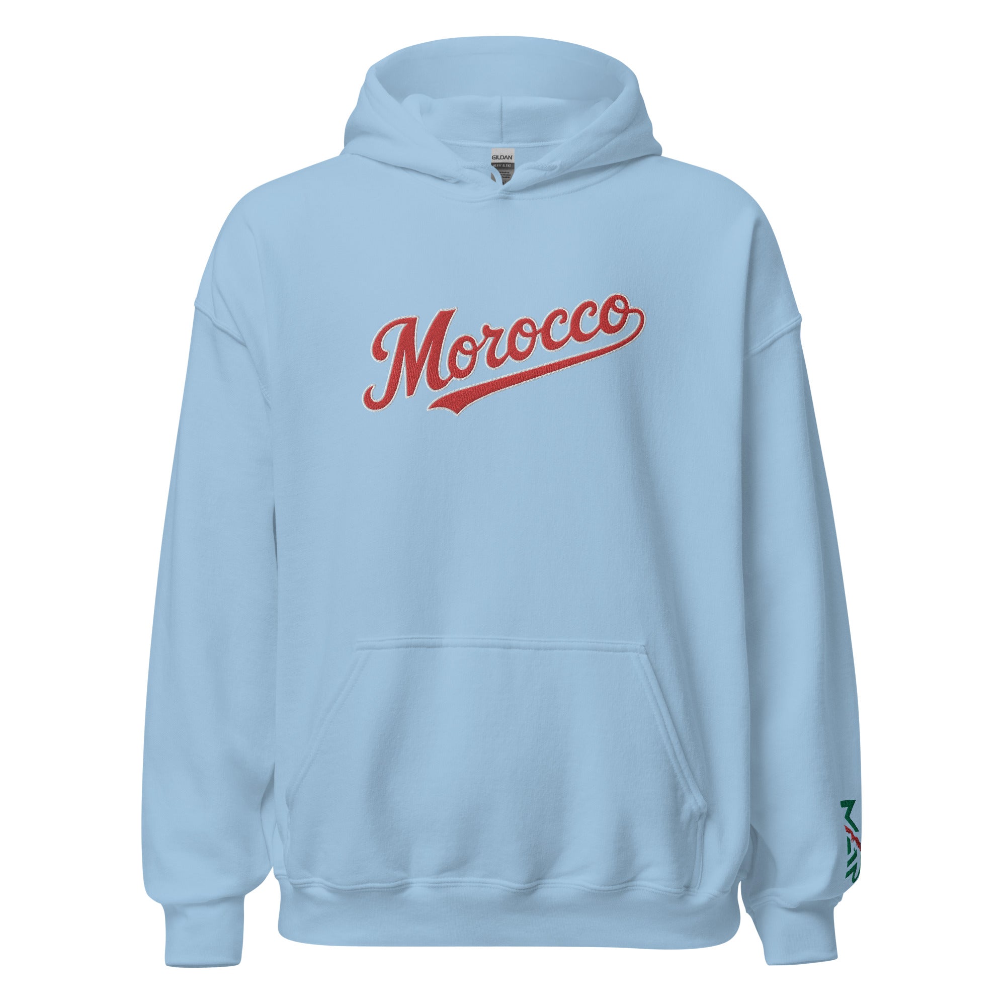 Ce sweat à capuche bleu avec broderie "Morocco" est parfait pour ajouter une touche d'élégance à votre tenue. Le tissu doux et chaud vous garde confortable tout en affichant votre amour pour ce beau pays. Un must-have pour tous les fans de la culture marocaine.