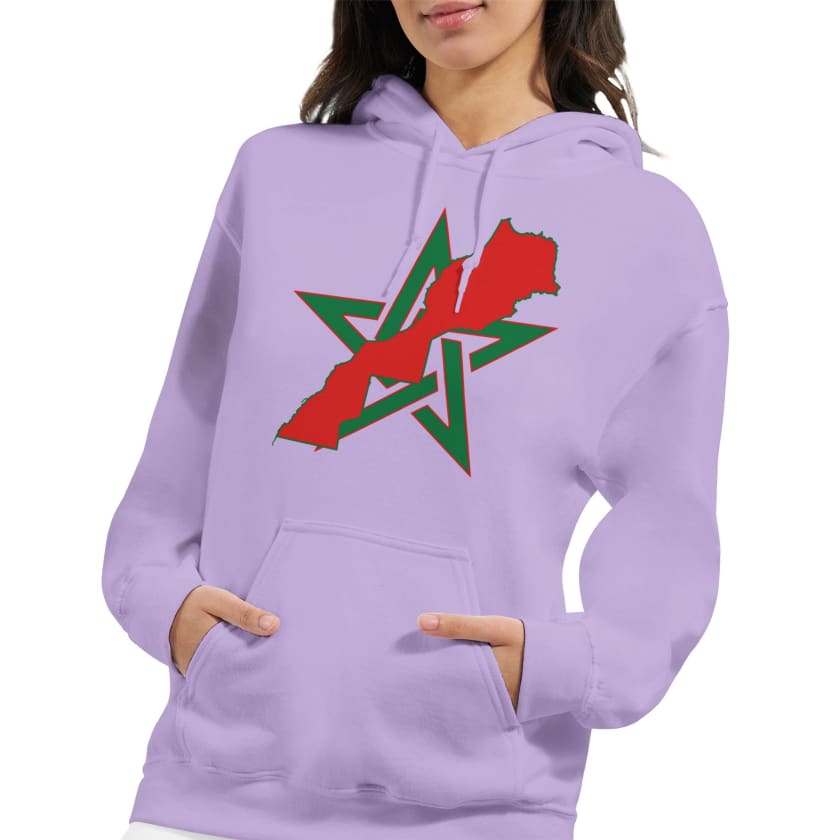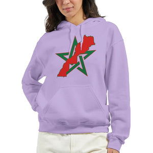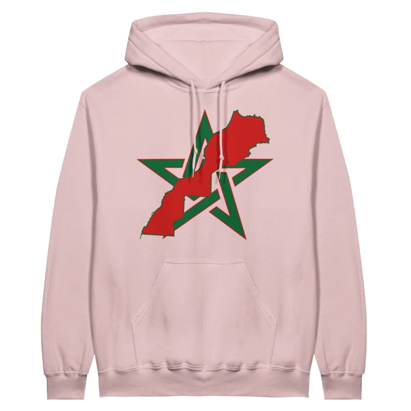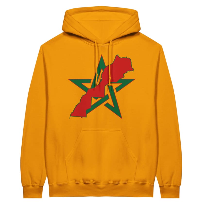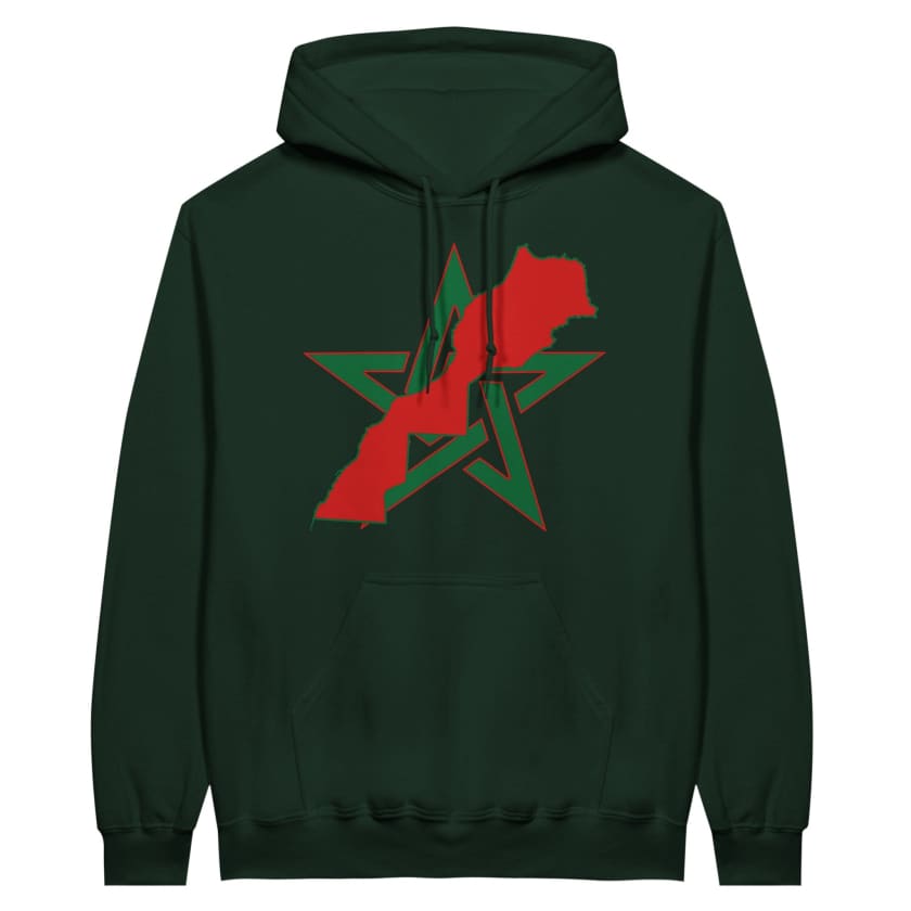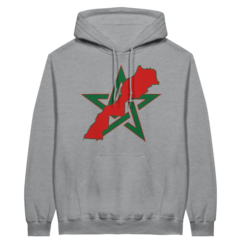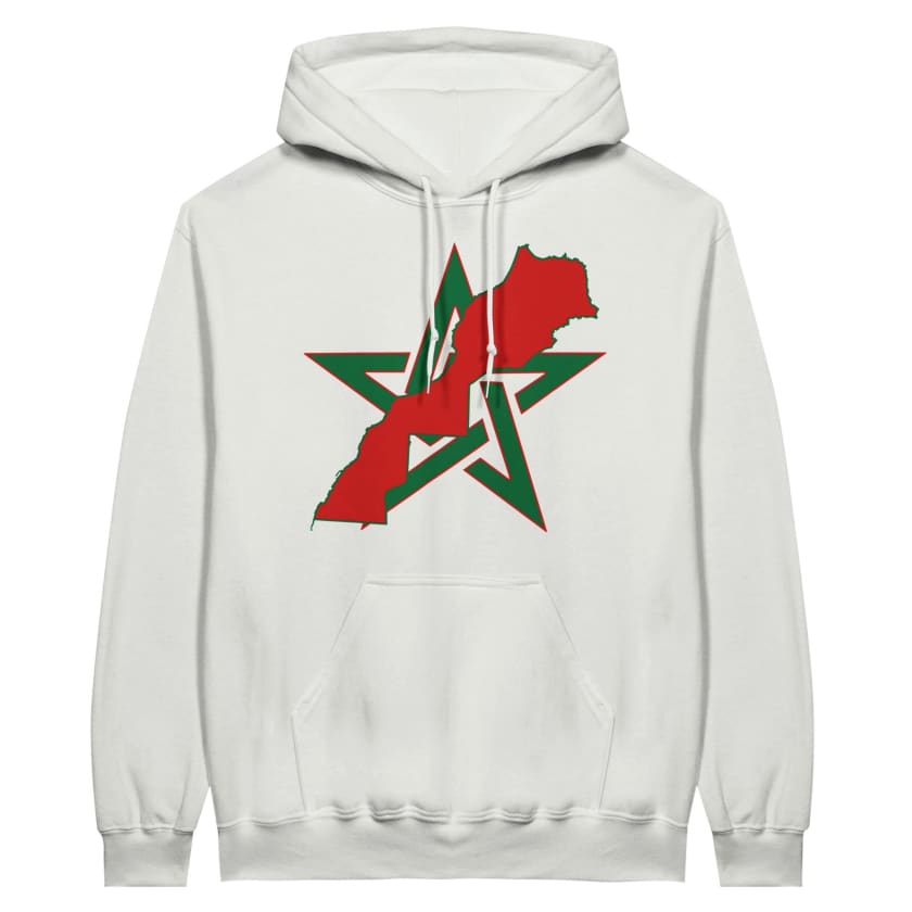 Ce sweat à capuche unisexe est orné d'une étoile et d'une carte du Maroc, pour un look unique et élégant. Confectionné avec un tissu doux et résistant, il vous offrira un confort optimal au quotidien. Affichez votre passion pour le Maroc avec style et fierté grâce à ce sweat à capuche tendance.