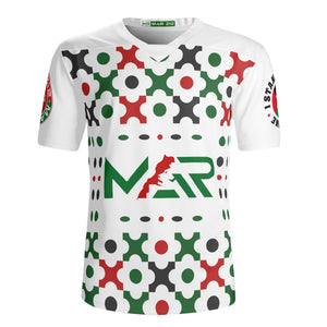 Affichez votre soutien au peuple de Palestine avec le Maillot Maroc Palestine union symbolique de solidarité. Montrez les couleurs vibrantes de leur histoire et leur quête de liberté. Symbolique et solide, c'est le moyen parfait pour montrer votre engagement envers une cause importante.