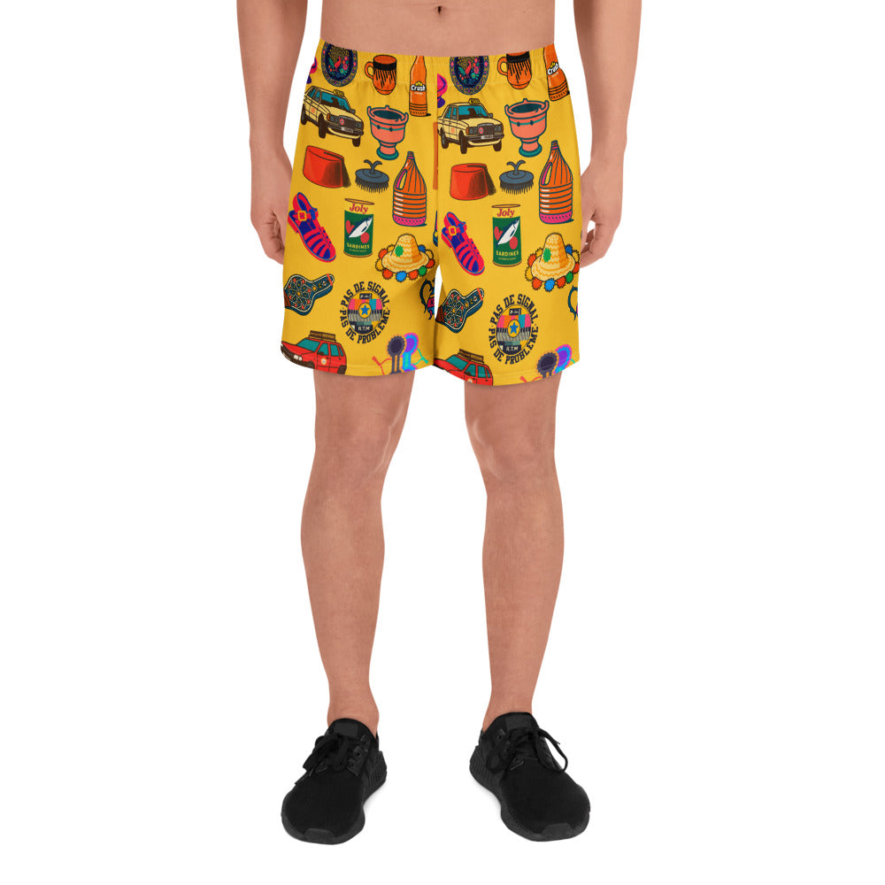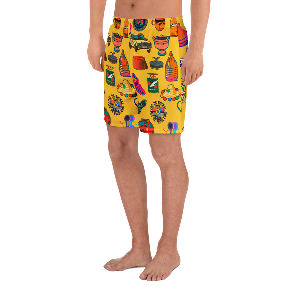 Un short qui raconte mille souvenirs. Chaque motif, du taxi rouge au tabssil Taws, en passant par la sandale Hallouma ou la boîte de sardine Joly, te replonge dans le bled authentique. Conçu pour les amoureux du Maroc qui veulent porter leur culture avec style. Confortable, résistant et totalement unique. À porter l’été… ou chaque fois que le cœur crie "bled forever".
