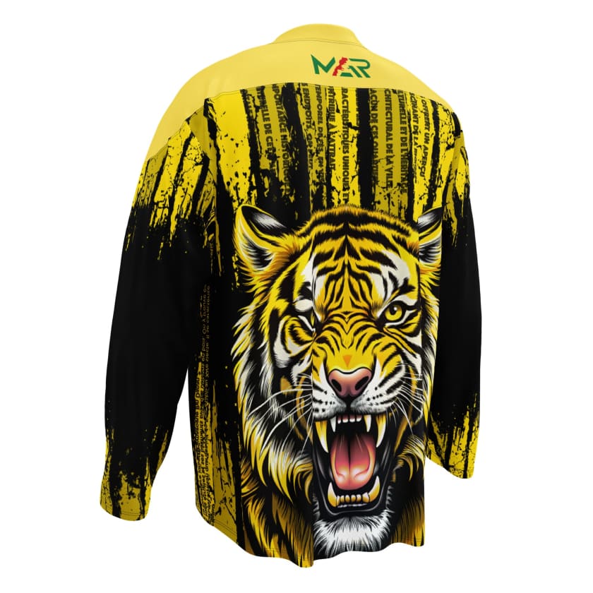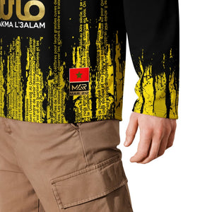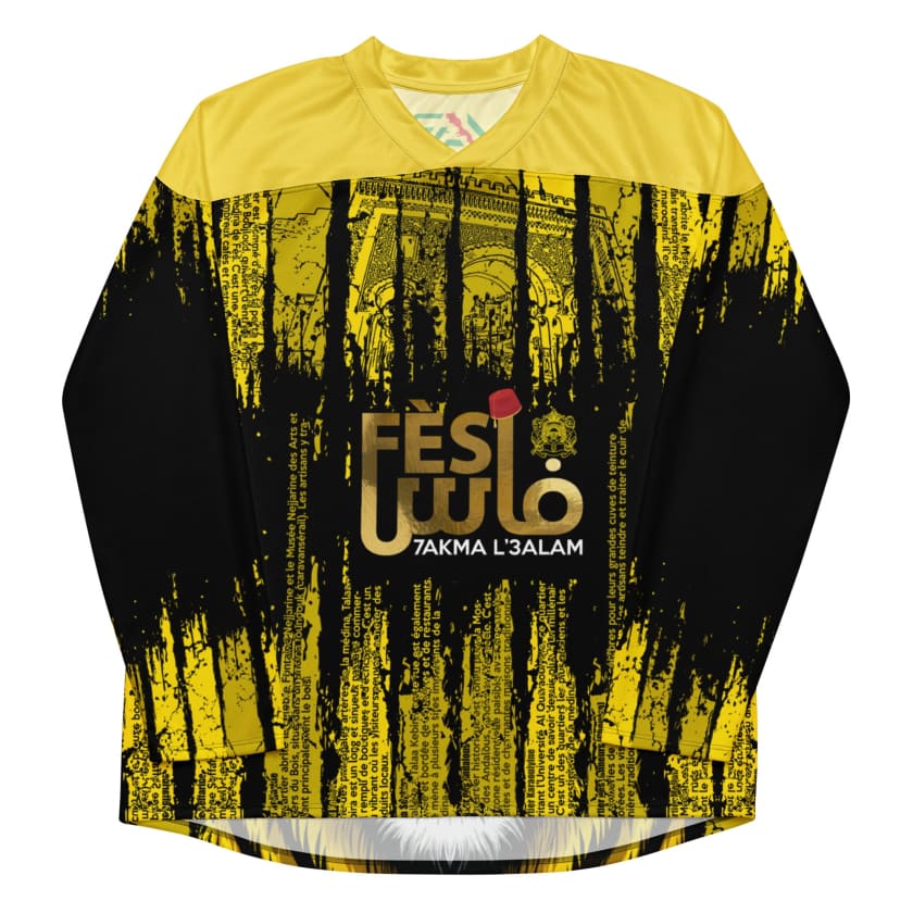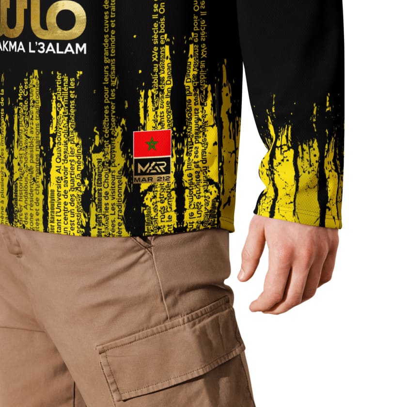 Ce maillot manches longues de foot supporter Maroc Fès Hakma l3alam est un incontournable pour les fans de l'équipe nationale et l'équipe de Fès DIMA MAS. Confectionné avec soin, il offre une expérience authentique grâce à sa structure spécifique de style hockey. Montrez votre soutien avec style !