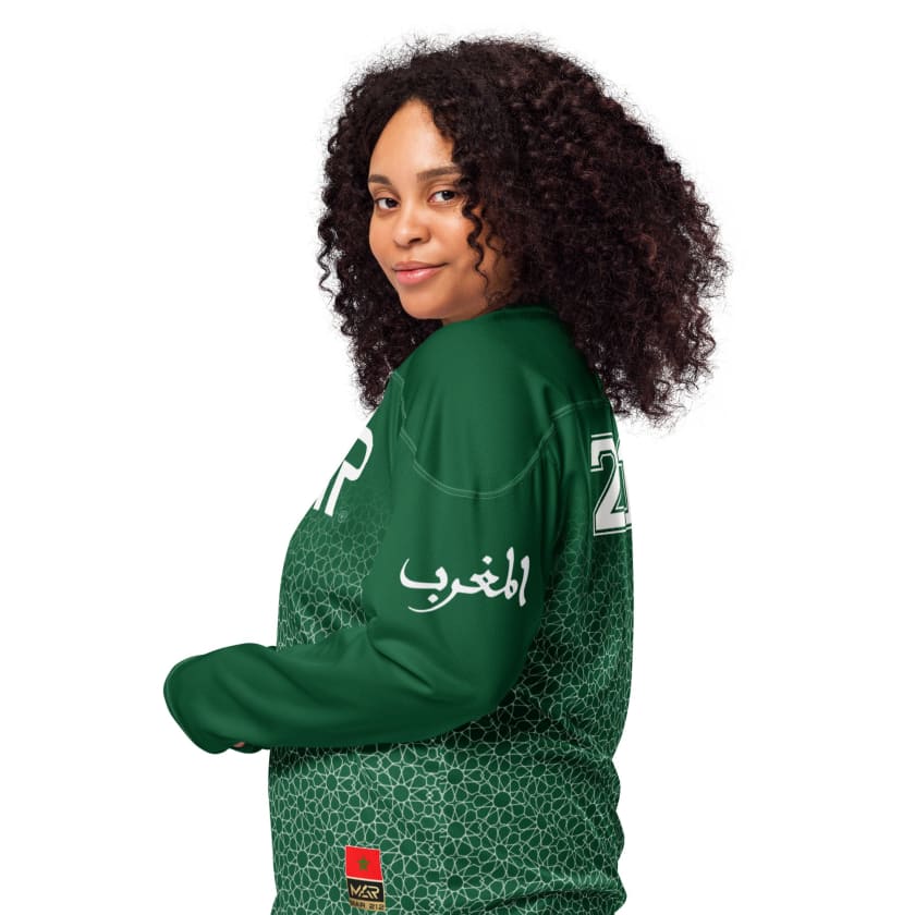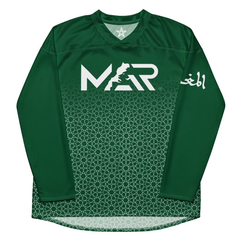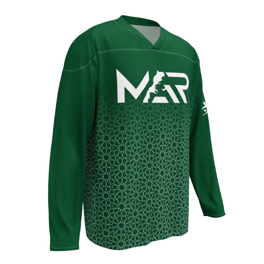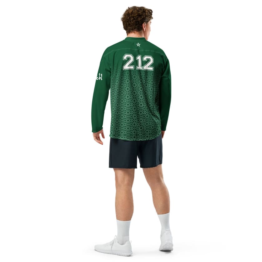 Découvrez notre maillot manches longues foot vert Maroc, fabriqué avec soin pour offrir une expérience de style hockey authentique aux fans. Conçu avec une structure unique, ce maillot vous garde au chaud et confortable pendant les matchs. Allez le Maroc!