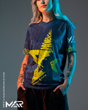 Brille comme une étoile du Bled avec ce maillot bleu marine au style explosif, mêlant street art, fierté nationale et vibes underground.
