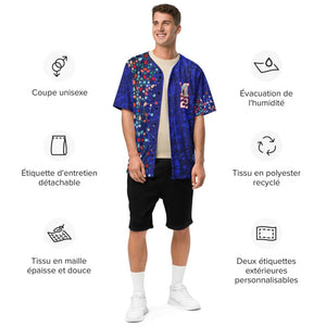Passez à un niveau supérieur avec ce maillot de baseball Motif zellige Marocain. Fabriqué en tissu recyclé pour un confort optimal et une évacuation de la transpiration, ce maillot vous permettra d'adopter un look unique au quotidien. Ajoutez une touche de style à votre garde-robe avec ce maillot classique.