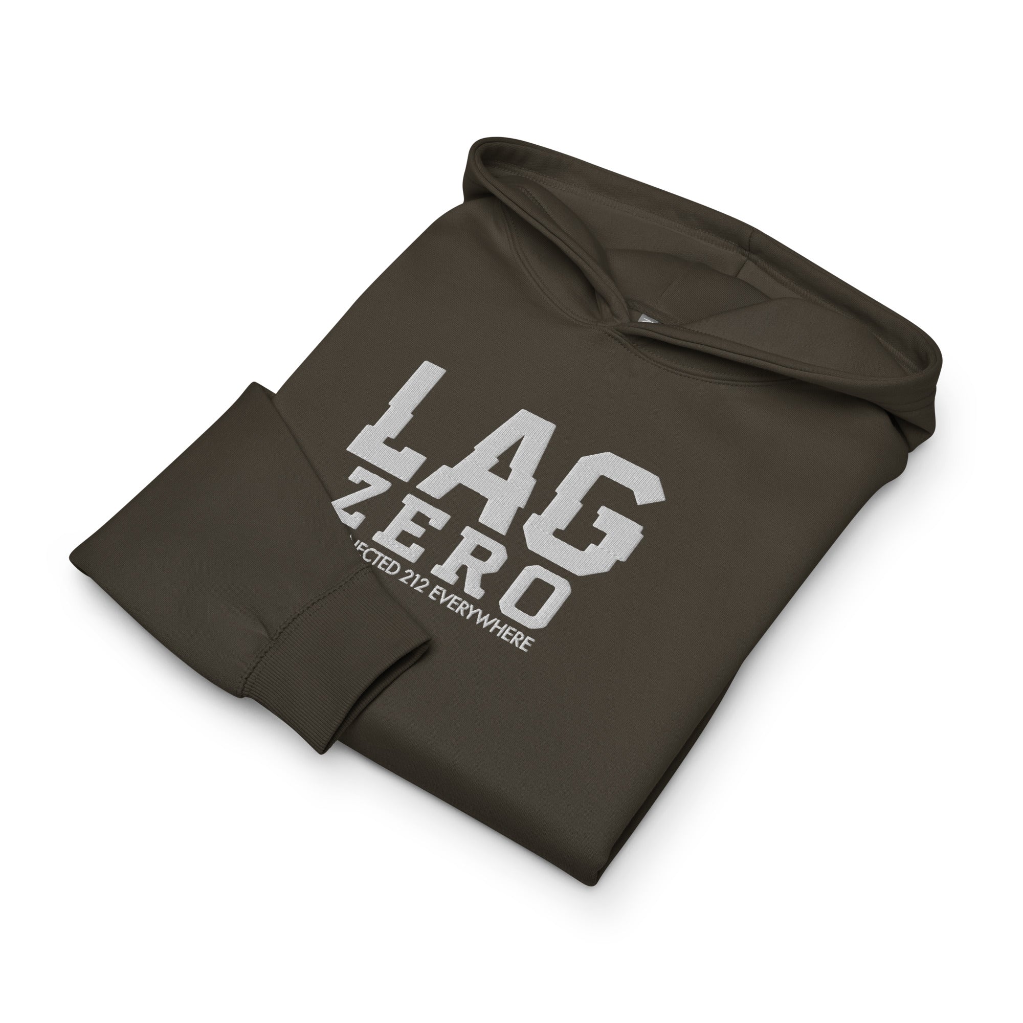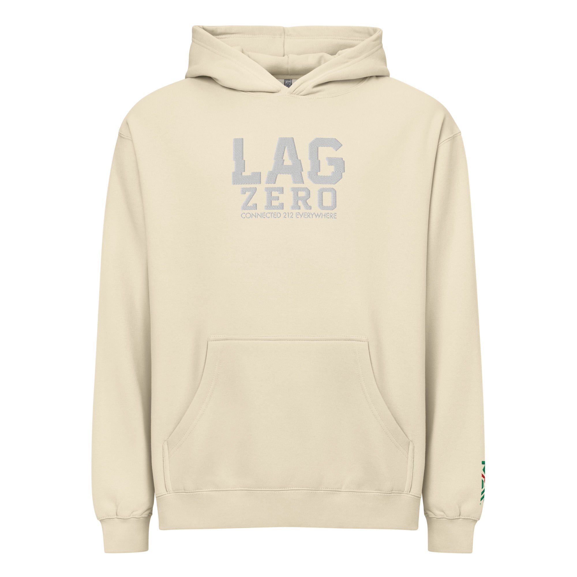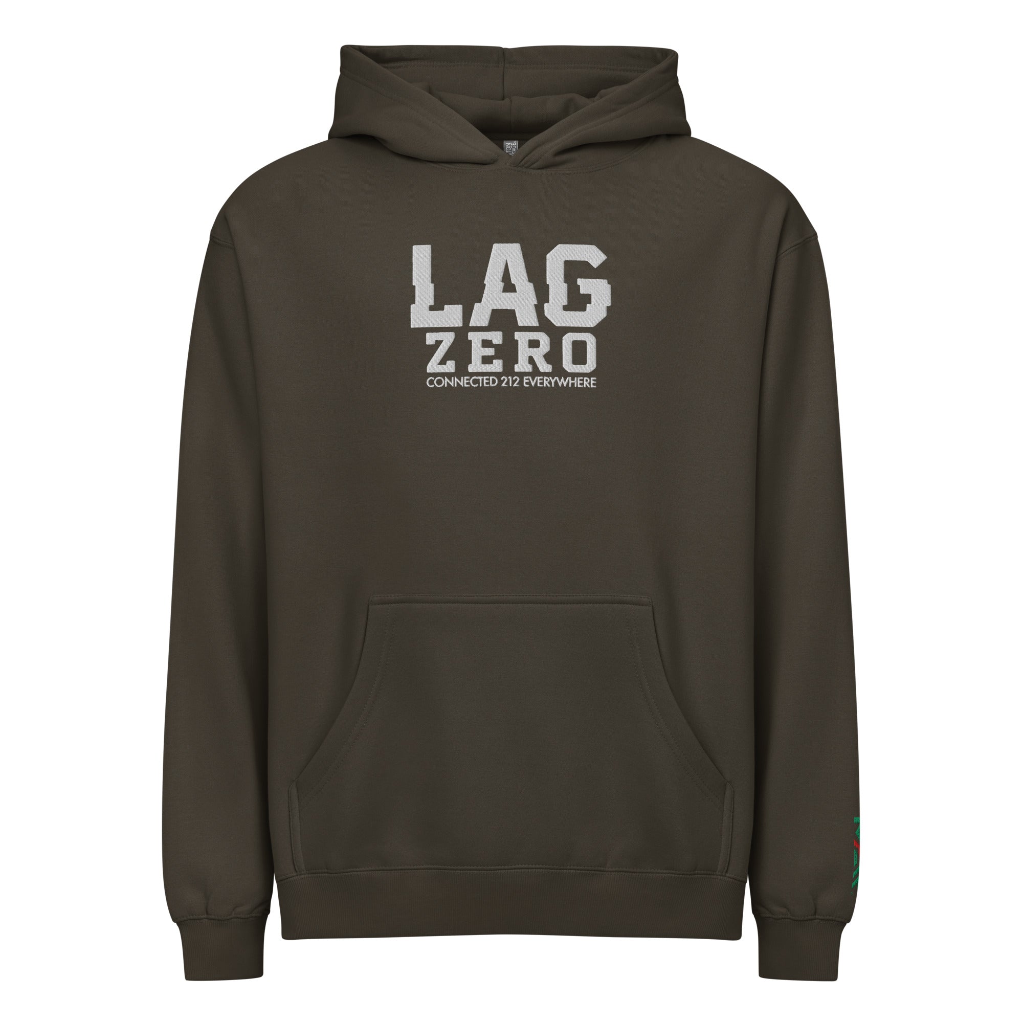Le sweat à capuche brodé “LAG ZERO – CONNECTED 212 EVERYWHERE” transforme un terme culte du gaming en véritable déclaration de fierté marocaine.