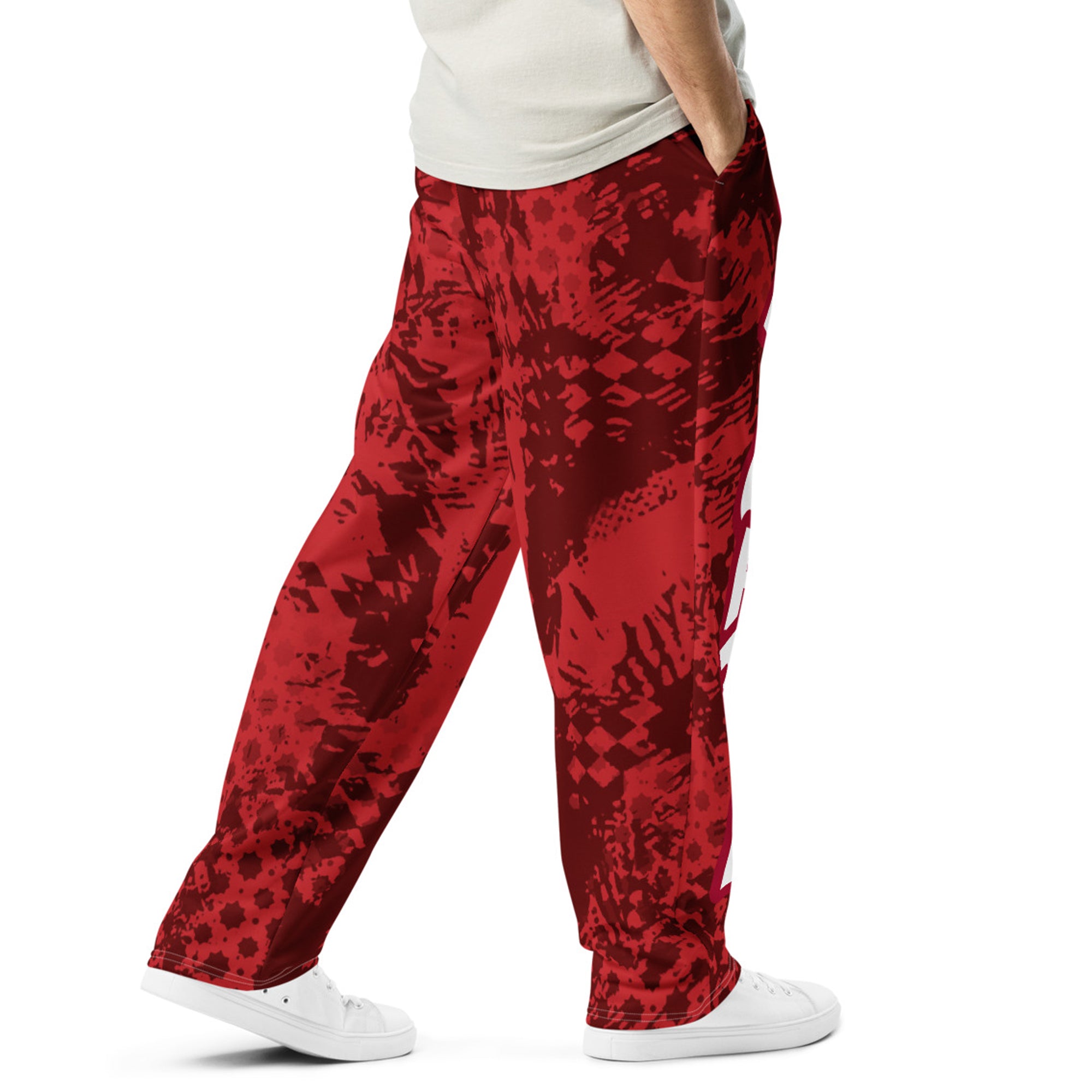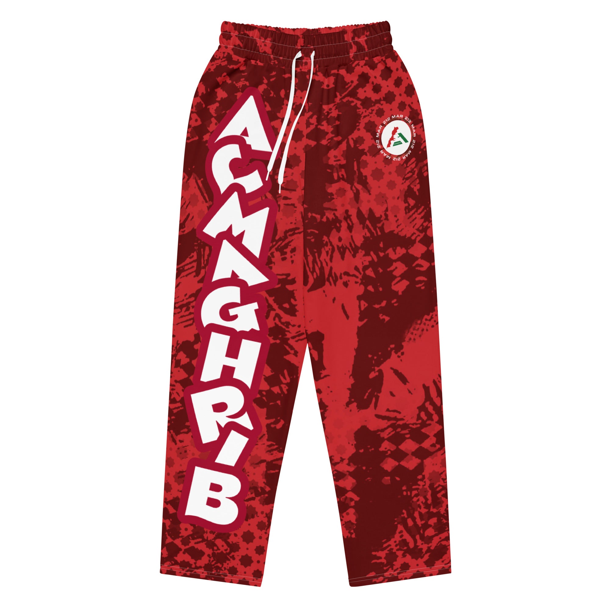 Le pantalon large Rouge Almaghrib Edition MARoco est un hommage vibrant au Maroc. Son lettrage XXL ALMAGHRIB en blanc contraste avec un rouge intense à effet texturé pour un style streetwear iconique. Conçu en 95 % polyester recyclé et 5 % spandex, il allie confort et souplesse grâce à sa coupe évasée, ses poches latérales et sa ceinture élastique avec cordon. L’équilibre parfait entre héritage marocain et allure urbaine.