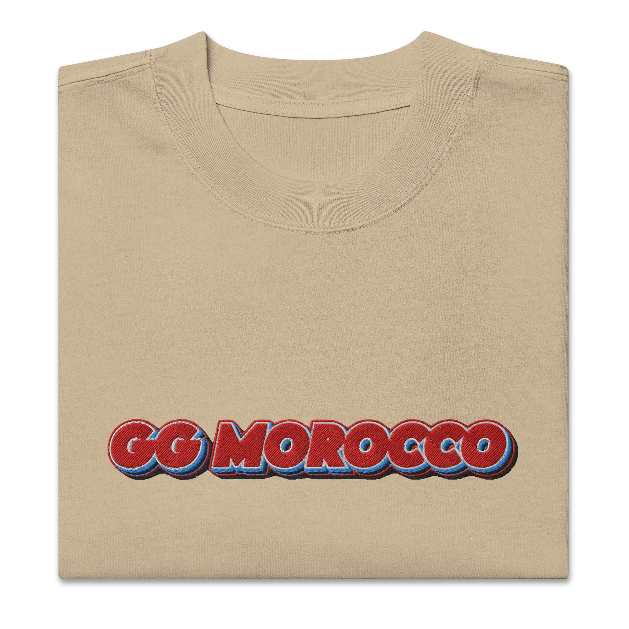 Avec ce T-shirt oversize brodé, la vibe e-sport et la fierté marocaine se rejoignent en un clin d’œil. Le marquage GG Morocco, brodé avec une précision premium, s’inspire des typographies gaming rétro tout en ajoutant une touche 212 pleine d’attitude.