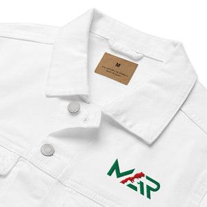 • Poches poitrine à boutonsVeste denim MAR brodé unisexe