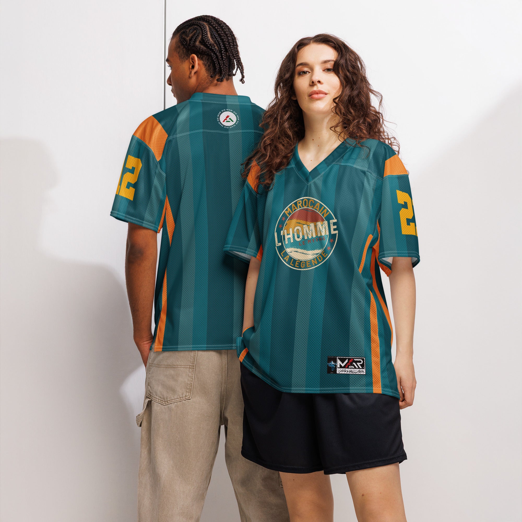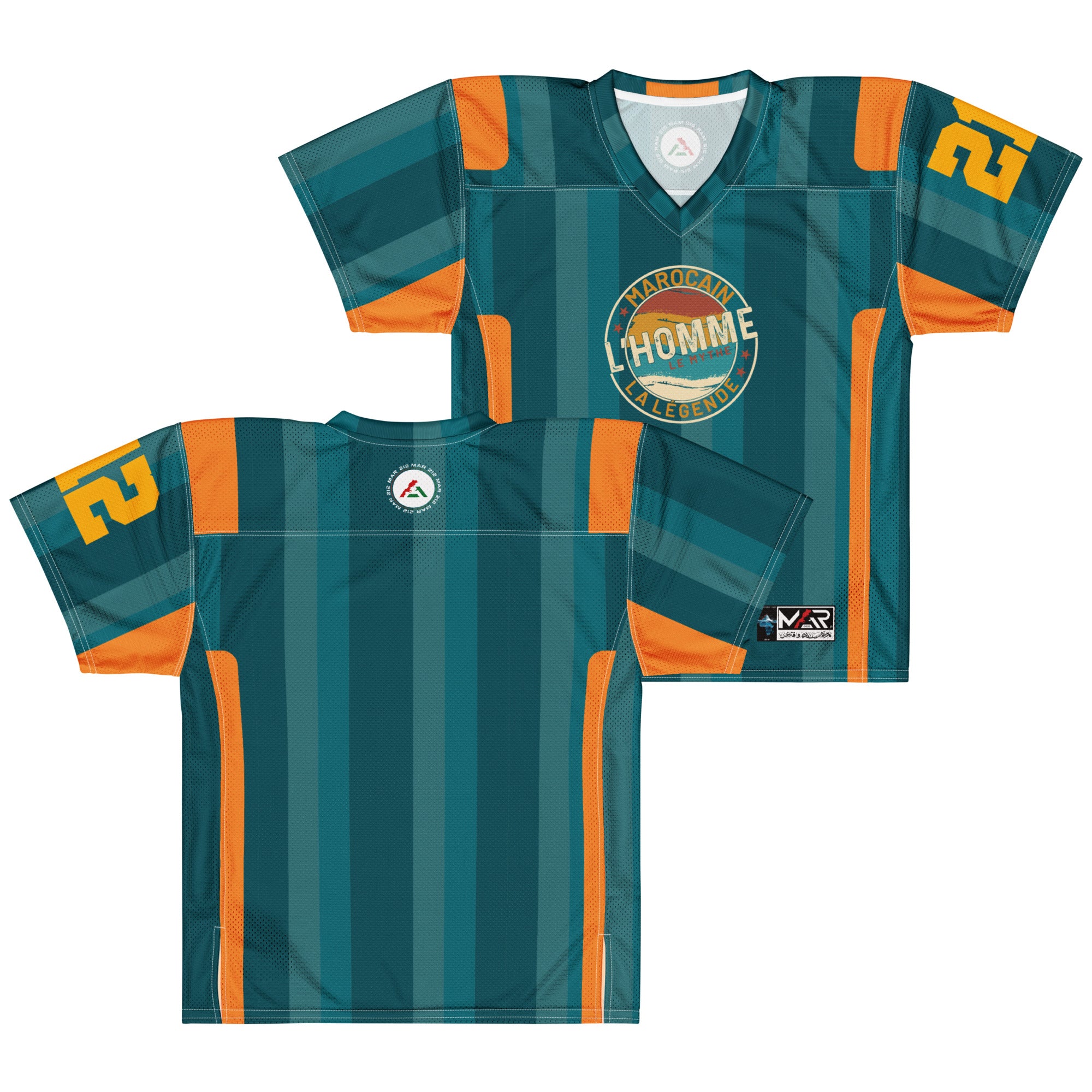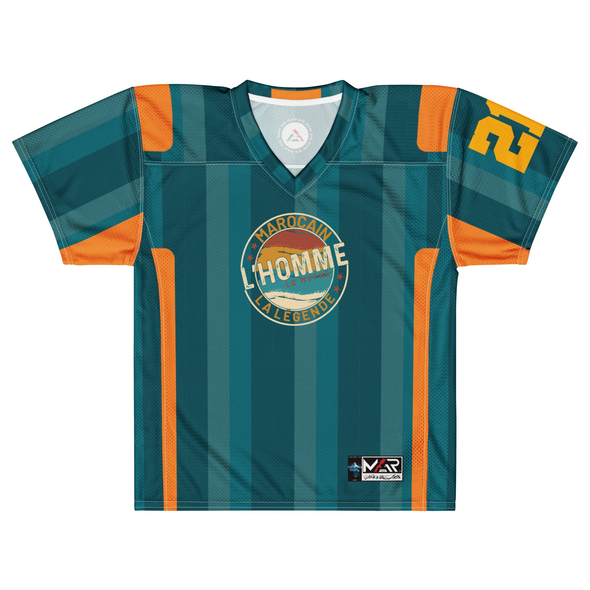 Le logo circulaire “L’HOMME” au centre du torse est un blason de fierté, entouré de la mention “Royaume du 212”, clin d’œil audacieux au code pays du Maroc.