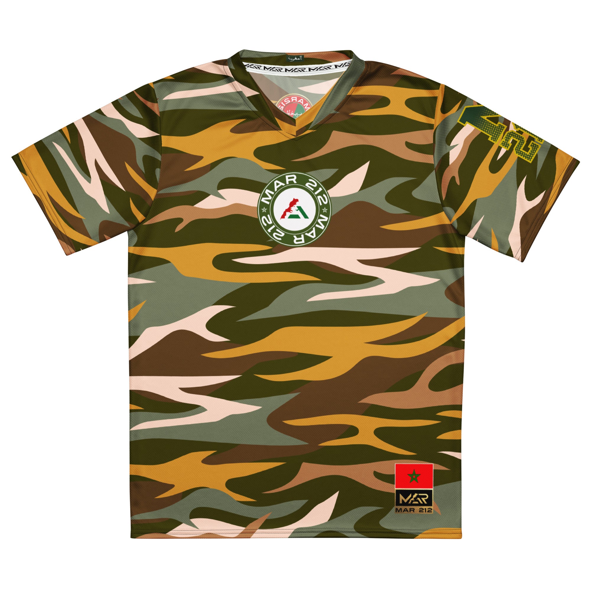 Le maillot COMMANDO MAR 212 fusionne l’univers militaire et streetwear, pour symboliser la force, la détermination et la fierté marocaine dans le monde entier.