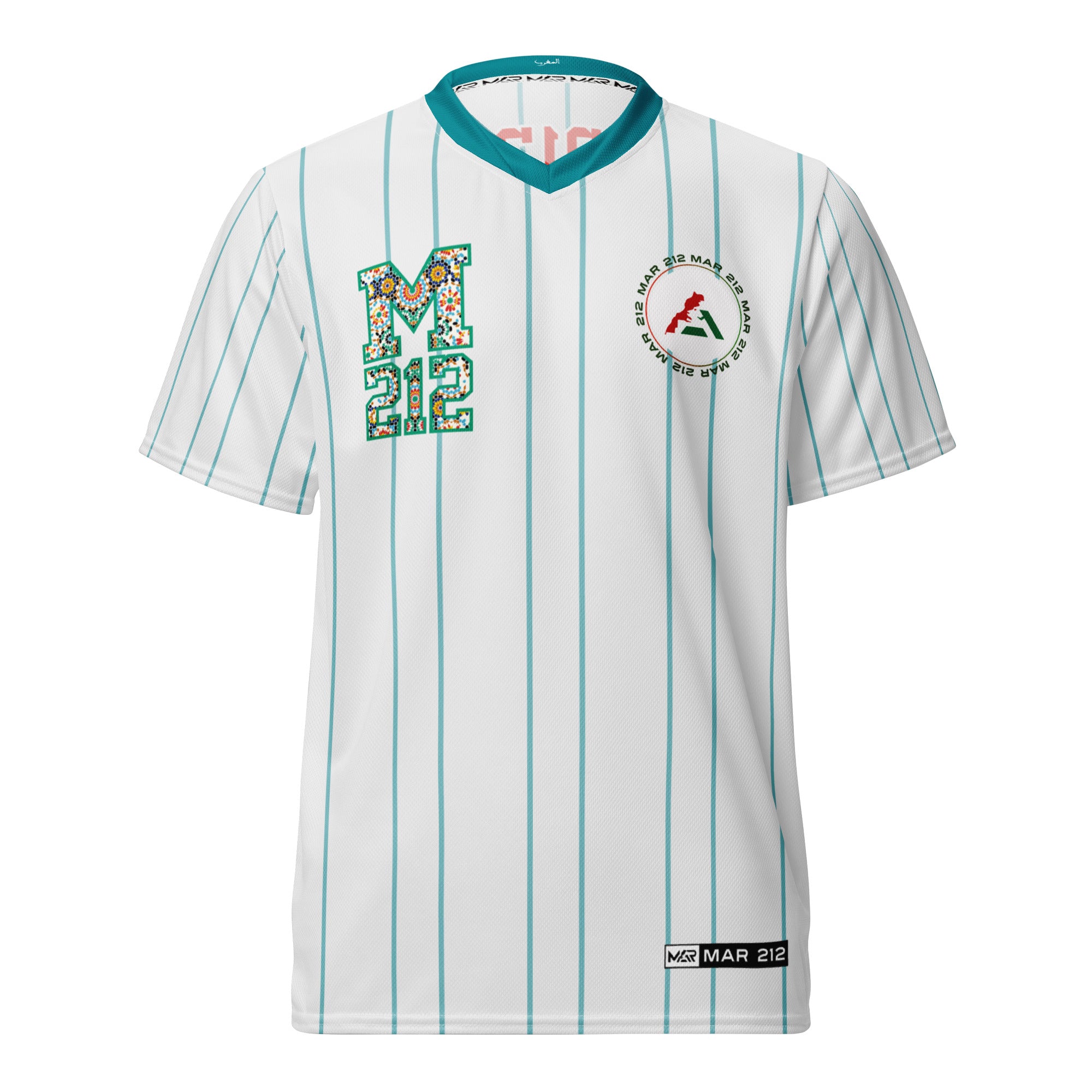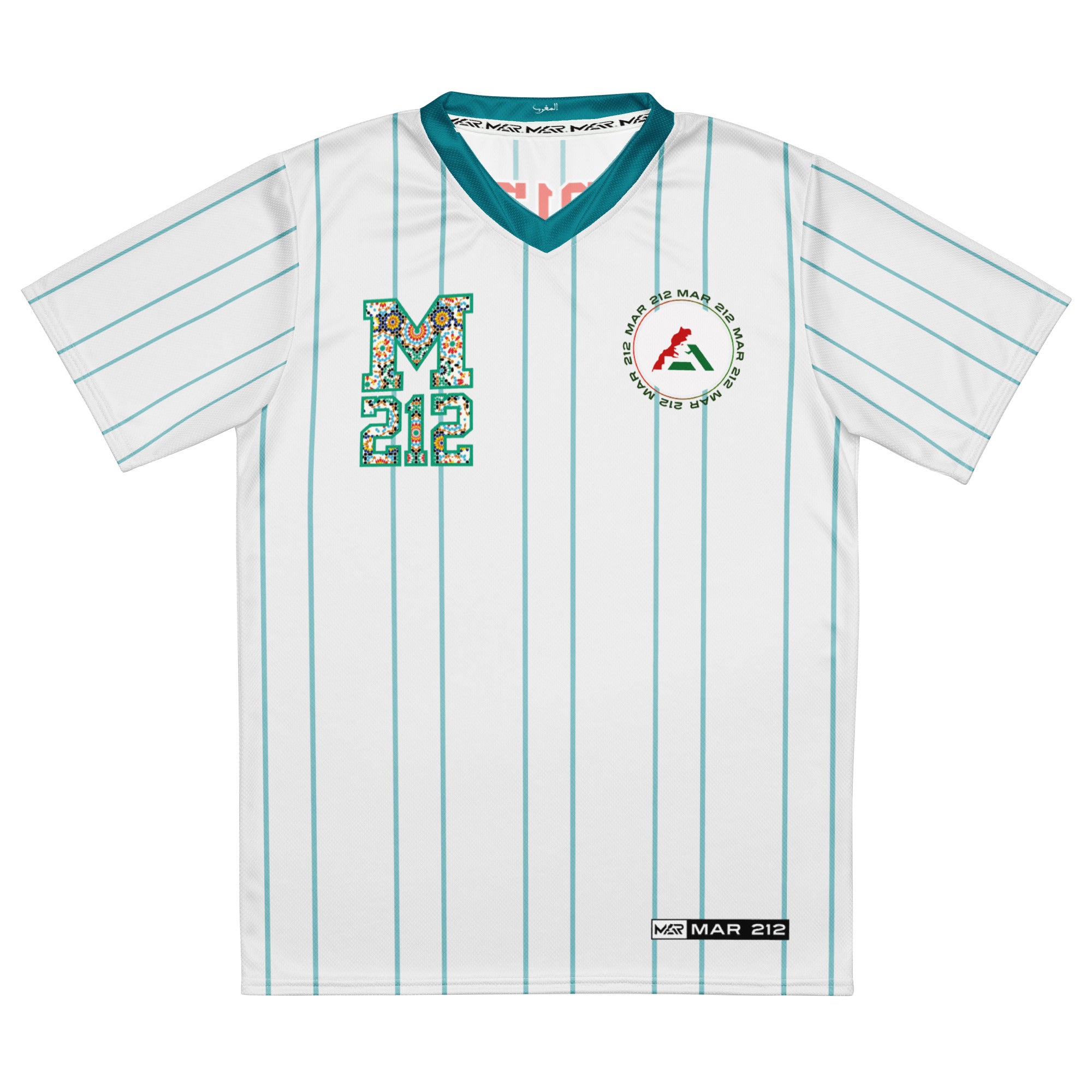 Prépare-toi à représenter le bled avec style pendant la CAN 2025. Ce maillot MAR212 unisexe revisite le classique avec ses fines rayures turquoises, son lettrage “M212” inspiré du zellige marocain et son écusson patriotique brodé. Un mélange subtil entre tradition et streetwear, conçu pour les supporters qui vibrent avec élégance. Léger, respirant, stylé : un uniforme pour les vrais amoureux du Maroc.