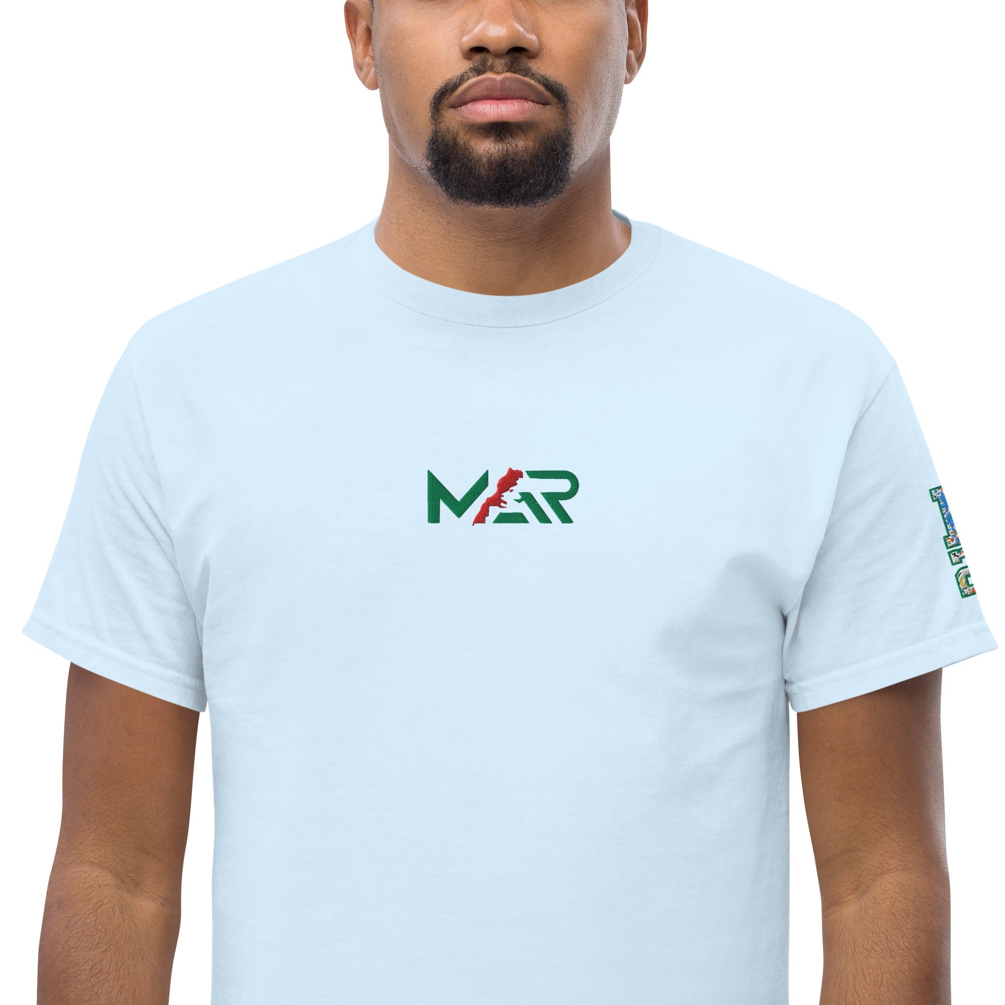 Ajoutez une touche de fraîcheur à votre garde-robe avec le t-shirt MAR classique bleu ciel au logo brodé unisexe. Confectionné en 100 % coton, il combine confort et style avec sa coupe structurée et ses bords impeccables. Idéal pour un look streetwear moderne ou une tenue décontractée, ce t-shirt polyvalent est un incontournable pour rester à la mode sans effort.