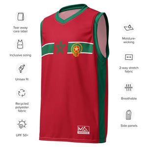 Notre Débardeur Maillot de basket Maroc, Maillot foot Maroc streetwear est un moyen sûr pour passer au niveau supérieur. Fabriqué en polyester recyclé avec une technologie de pointe, il offre une respirabilité et une protection contre la transpiration, même sous les conditions les plus chaudes. Porté en tant que pièce de streetwear, vous serez prêt à affronter les compétitions et à faire sensation en ville.