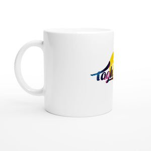 Cette tasse en céramique blanche pour le café, le chocolat chaud et toute autre boisson chaude présente un magnifique design Taghazoute ville du Maroc. Sa finition lisse exaltera les impressions, et leur qualité et leur éclat seront conservés même après avoir été chauffées au micro-ondes et lavées au lave-vaisselle.