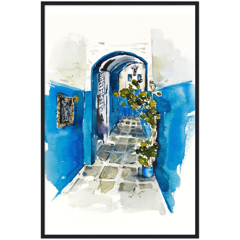 Vous avez envie de ramener chez vous un peu du Maroc ? D'embellir votre intérieur avec un objet unique et authentique ? Alors découvrez notre poster aquarelle, œuvre unique et somptueuse, représentant une ruelle de Chefchaouen, ville marocaine mystique et authentique. Ce dessin, encadré dans un magnifique bois, vous transportera dans des contrées lointaines pour le meilleur de votre déco.