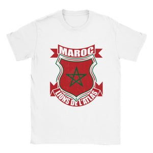 Les motifs sont imprimés sur un tissu doux et respirant, vous garantissant un confort optimal. Le T-shirt Maroc Lions de l'Atlas Design Original est idéal pour compléter un look décontracté ou pour ajouter une touche de style à une tenue plus sophistiquée.