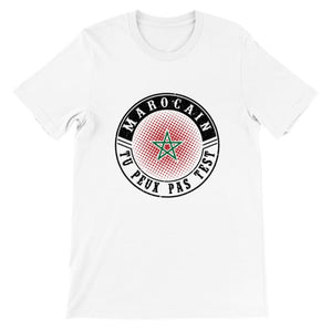 Les impressions sont à la fois durables et lavables en machine, ce qui en fait un t-shirt que vous pourrez porter encore et encore. Ce t-shirt est disponible en différentes tailles pour convenir à toutes les silhouettes. Alors, qu'attendez-vous pour vous procurer le t-shirt Marocain tu peux pas test ?