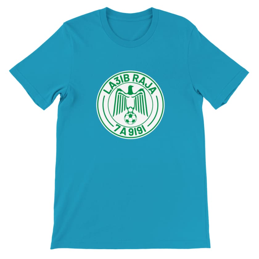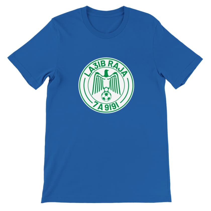 Chez Raja Club de Foot Casablanca, nous vous proposons notre t-shirt exclusif "LA3IB RAJA 7A9I9I", conçu pour les vrais fans du club en l’honneur du petit Prason. Il est fait de coton de qualité supérieure pour plus de confort et un look unique. On vous garantit que vous ne trouverez nulle part ailleurs un habillage plus cool.