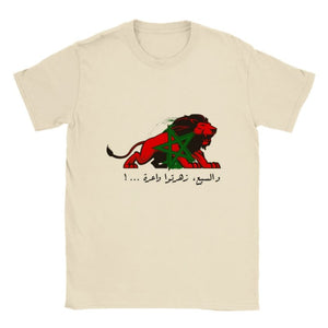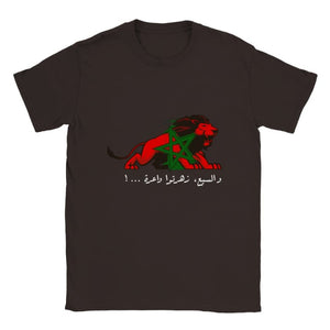 T-shirt sbe3 zahartou wa3ra, le seul et unique t-shirt pour tous ceux qui veulent afficher leur force et leur courage. Avec son message « le rugissement que fait le lion est terrifiant », ce t-shirt est le moyen parfait pour montrer que vous n'avez pas peur de vous battre pour vos convictions.