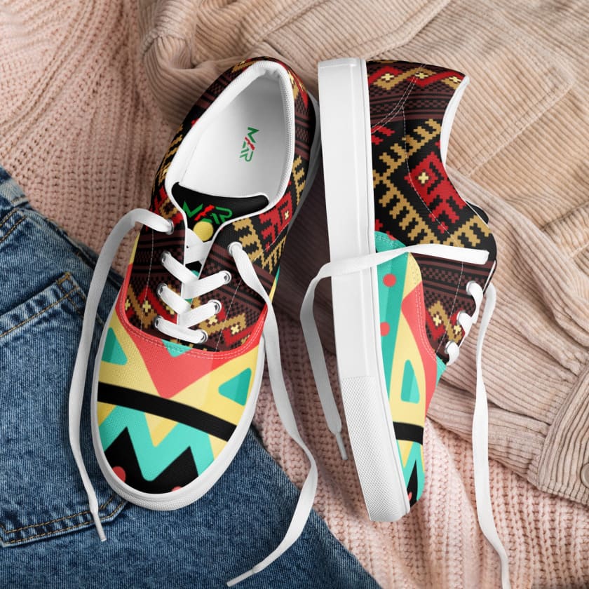 Tennis en toile avec lacets motifs marocain Amazigh unisexe - MAR by MARoco © | La marque des Marocains du monde